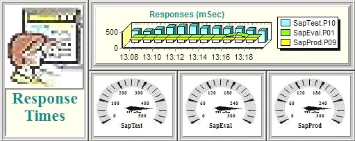 Bei der Abfrage einer Gruppe aus SAP-Systemen wird jeweils ein einzelner Wert ausgelesen. Dieser lässt sich mittels Objekten gezielt darstellen. Zusätzlich lässt sich die Anzeige durch „Tachometer“ bzw. eigene „Images“ ergänzen.